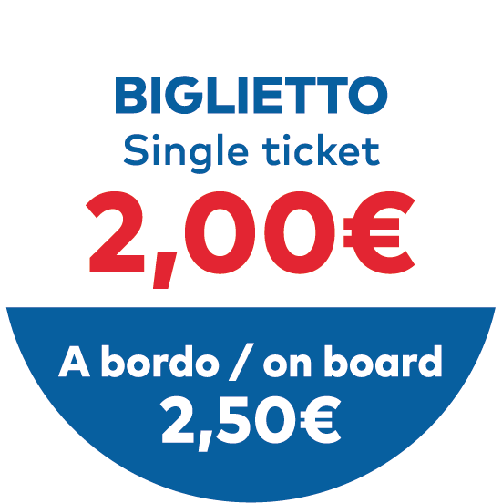 Costo a bordo: 2,50€ (sovrapprezzo – in contanti)